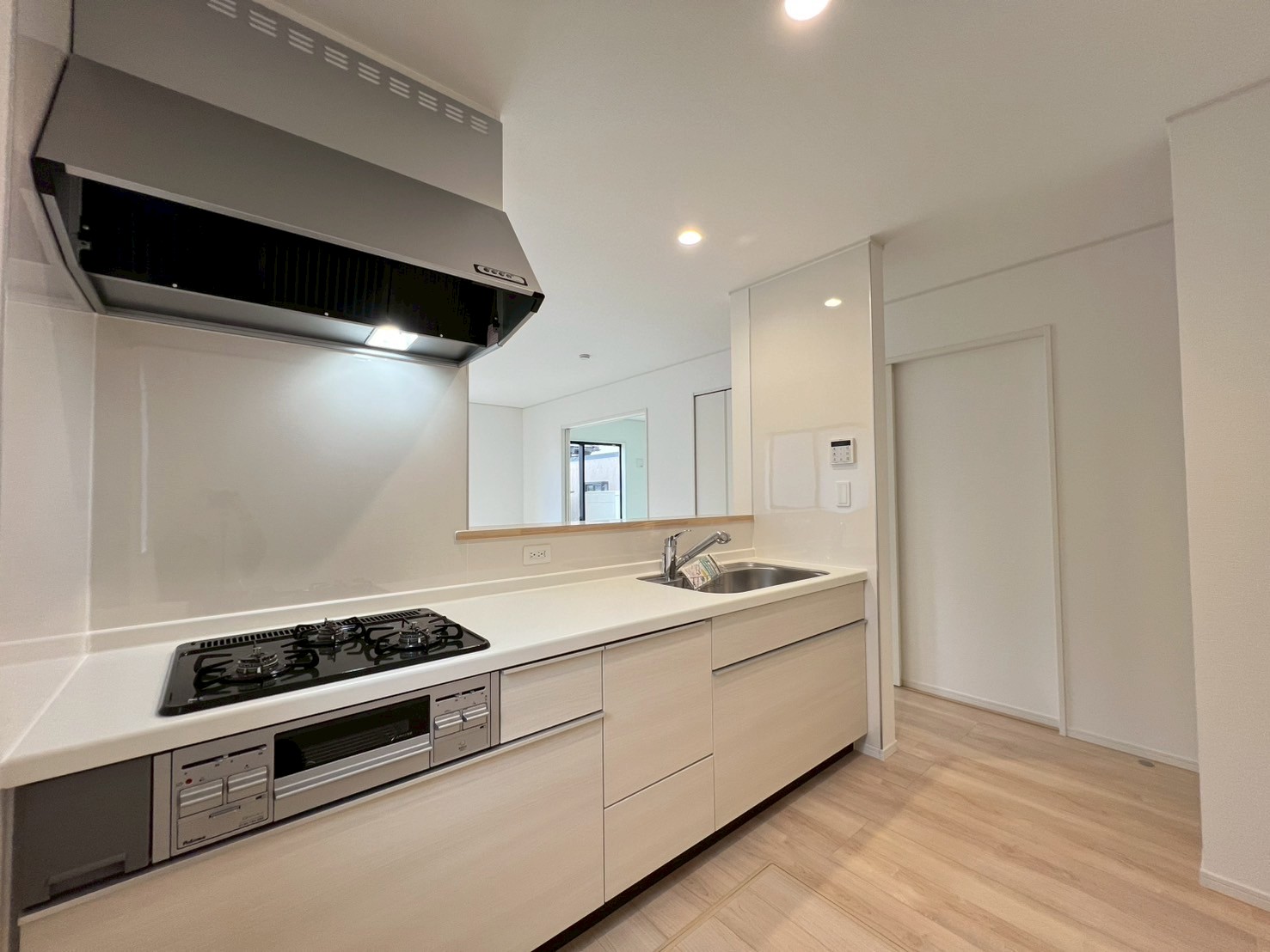 - 陽当たり良好ペット可新築物件学校近く南向き床下収納浴室乾燥機複層ガラス駐車場3台以上閑静な住宅街防犯カメラシステムキッチンシャワー付き洗面台ガスコンロ付き